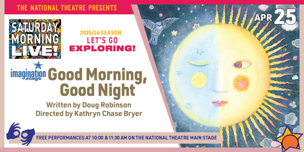 This April, Imagination Stage invites you to uncover the beauty of the world during daytime and nighttime with friends Winnie and August. Good Morning, Good Night is a multi-sensory storytelling experience, driven by audience participation. Come wake the birds and release the fireflies on this day to night adventure! Join us for free performances on The National Theatre mainstage at 10am and 11:30am on April 25th, 2026. Pre-registration is now live.